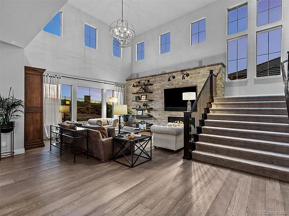 - Description: Spectacular Great Rm W Soaring 20' Ceilings & Eldorado Rock Wall