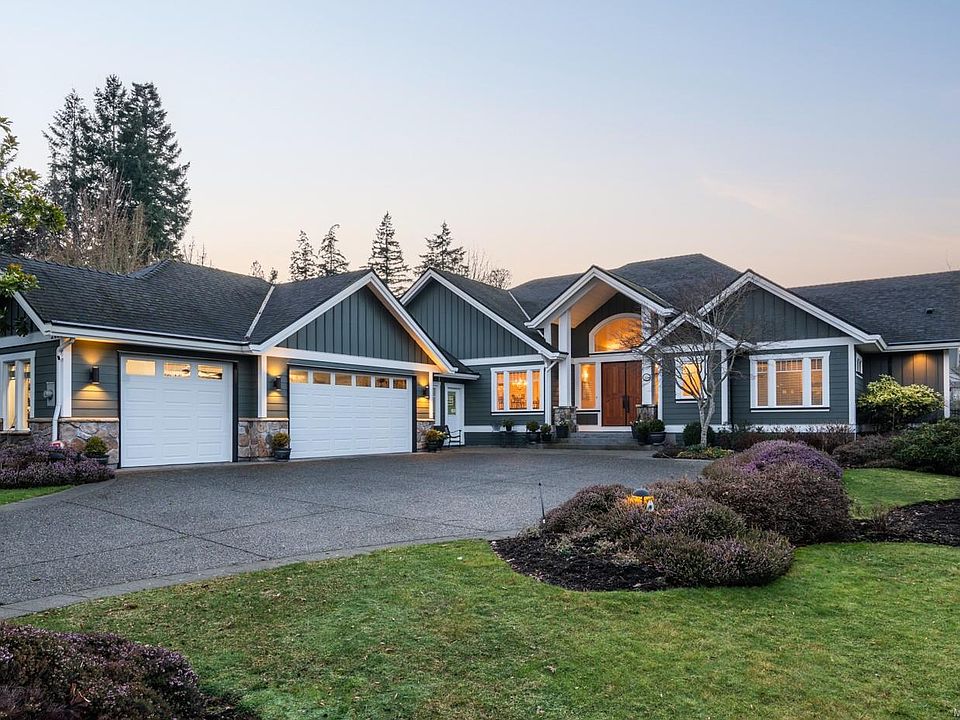 This expansive, custom built and meticulously cared for 2885 sqft rancher is located on the 18th hole of the prestigious Bear Mountain Golf Resort. Stunning architecture and superior finishes this home and location are unparalleled. The interior is flooded with natural light from walls of picture windows that showcase garden and golf course views. The chef’s kitchen features premium appliances, quality cabinetry and granite counters. The great room, ideal for entertaining, balances sophistication and comfort with vaulted ceilings and gas fireplace. The walk-out primary suite offers a serene ensuite with soaker tub and duo walk-in closets. The dining room, den, 2-pce bath, laundry and two guest bedrooms with walk-in closets and shared ensuite complete this timeless one-level home. Outdoor living is enhanced by covered patios, mature and manicured landscaping, fenced yard, and an 850 sq ft 3-car garage. Golf, resort amenities, dining, shops, and spa services are just a short walk away.