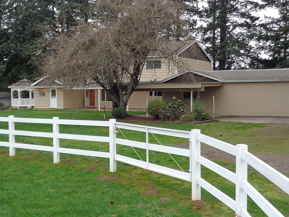 Yes it's dated but it's rock solid & priced to sell at $196,486 under county RMV! 3100+sqft home, 5 bdrm 2-1/2baths 2FP's, AC/gas heat. Big kitchen w/eatin bar & hdwds. Plus a 4-car 1100'garage Plus a 63'x36' barn/stables/tack rm for horses or? fenced, 2 gazebos, Close-in 3 tax lots total of 4.59acres, 5 miles to freeway & shopping & schools are even closer & less than 1 mile to UGB. A lot for the $$, hurry.