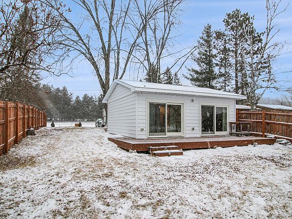 Your Slice of Heaven on Big Pine Lake! Completely remodeled and move-in ready, this seasonal cabin offers a serene lakefront setting on a beautiful, level lot with direct access to the water. Thoughtfully updated with modern conveniences and designed for relaxation, this property is perfect for those seeking a tranquil retreat. This one-level cabin features 2 bedrooms, a custom barnwood-finished ¾ bathroom with a roll-in shower, and 184 sq ft of new maintenance-free composite decking overlooking the backyard and lake. The interior boasts an 8’ sliding patio door off both the kitchen and living rooms, flooding the space with natural light and offering breathtaking lake views. Additional upgrades include all-new electric, plumbing, a mini-split for heat and AC, a new water heater, new maintenance-free windows, and new steel siding with maintenance free soffit and fascia. This property has made accessibility a priority, with features such as wide doorways and a roll-in shower. Outdoor amenities include a cedar privacy fence along both property lines, an outdoor shower for cleaning off after a day in the lake, and a dock that stays with the property. The yard has been drain-tiled to keep water away from the cabin and outdoor areas. Additional storage is provided by a large garden shed, and the property also includes a 30amp camper/RV hookup. Extras include bunk beds, a security system with cameras (requires internet and app), a mower, and a winch for easy dock removal. In addition to Big Pine Lake, you also have access to Pine Lake, which is connected and perfect for even more water adventures. You can conveniently launch your boats just around the corner on the north side of the cabin.