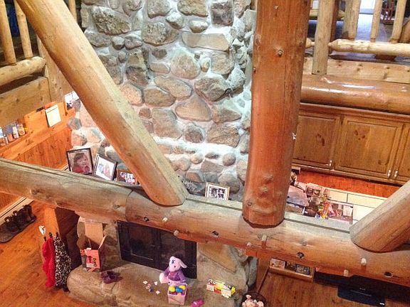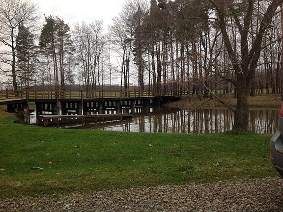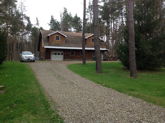 Spacious log home in a beautiful wooded setting, complete with a stocked pond with a bridge in front of the home. The interior of the home has a open floor plan with vaulted ceilings, and a massive stone fire place that extends two stories. Also on the main level you will find one bedroom, bath, laundry, and bath. The upper level has two bedrooms, loft area that goes to a large covered porch, half bath, and plumbed for another bath to be added. The 30x40 garage is heated with a large second floor area that is partly finished. It could be turned into a second residence. Heating and plumbing in.