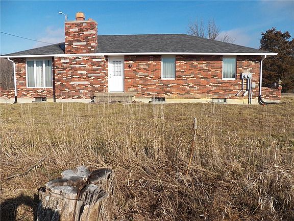 Country Brick home on 77 ac m/l W Southern Exposure, with full basement, attached garage & Carport, machine shed w/ shop utility barn, 2 grain bins, 20 ac m/l timbered, creek, and lake.