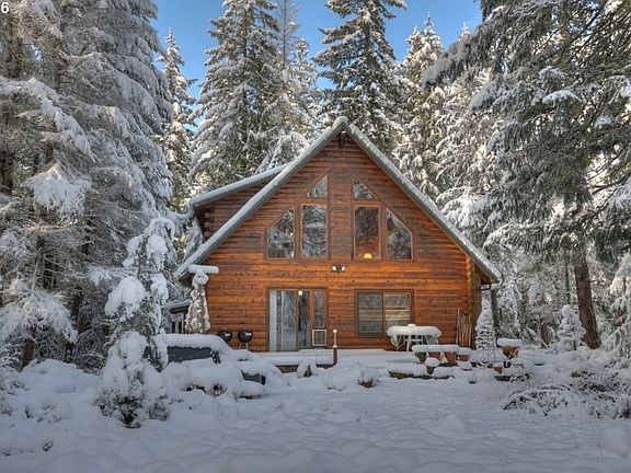 Log cabin with rare 10 level acres of land on Mt. Hood. Built in 1992, this cozy log cabin has three bedrooms, two baths on a beautiful forested setting. Three car oversized garage/shop with cement floor. Three tax lots included with sale. Needs a little TLC like new carpeting. Good for horses or mini farm. Private location with lots of potential! Only 25 minutes to slopes and National Forest near by. About one hour to Portland!