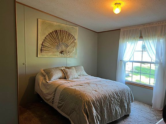 This manufactured home features 3 bedrooms, 1.5 baths with a 16 x 26 attached carport. The home comes with a total of 5 parcels/lots. A new well was installed in 2012. A new metal roof was put on in 2021. The laundry room has cabinets, closet and washer/dryer hookups. The half-bath is off of the first bedroom featuring vinyl flooring and a walk-in closet. The kitchen has an eat-in dining area with vinyl flooring and a sliding door to the backyard. There is bar seating in the kitchen as well. Open concept into the large living room that has carpet and a ceiling fan. The three bedrooms feature, carpet, closet and a ceiling fan. The full bath has vinyl flooring and tub/shower combination. There are 5 lots. 3 are 40 X 100 and 2 that are 50 X 135. Total of .58 acre. Property is located in Russellville, but has a Lawrenceville 911 address.