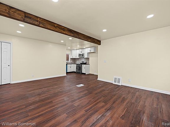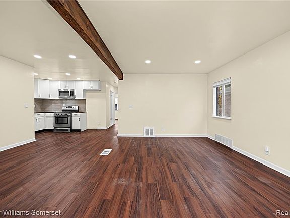 Discover this beautifully updated 3-bedroom, 2-bath ranch located on a quiet block of Detroit's 48219. Step inside to an open, freshly renovated main level featuring new flooring, recessed lighting, and a bright, modern layout. The updated kitchen offers white cabinetry, stainless steel appliances, and sleek tile backsplash. The main floor includes three comfortable bedrooms and a fully updated bathroom with stylish finishes. Head downstairs to the finished basement, perfect for additional living space, a home office, or recreation area, complete with the second full bathroom for added convenience. Outside, enjoy a spacious yard with detached garage and plenty of room for parking. Close to major freeways, shopping, parks, and everyday necessities. Pets allowed but subject to approval and number limit with nonrefundable pet deposit. Non refundable cleaning fee. Stove and Fridge installed prior to move-in.