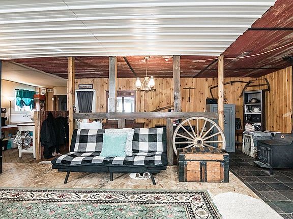 Cabin style living! One bedroom with great room, small kitchen and full bath. Wood burning stove heats the whole cabin. Water & electric in horse barn, 3 stalls and 3 run in sheds. Insulated and heated hunting blind. Almost 7 acres of land, 3 used as horse pasture. Owners used to have 15 horses boarded on property. 2022-01-31