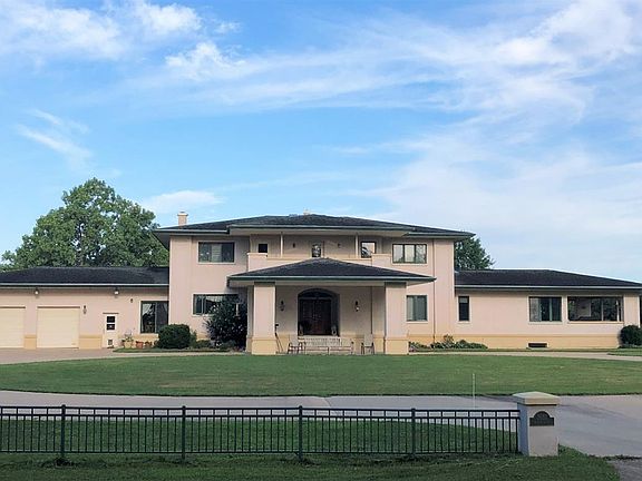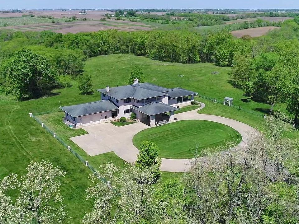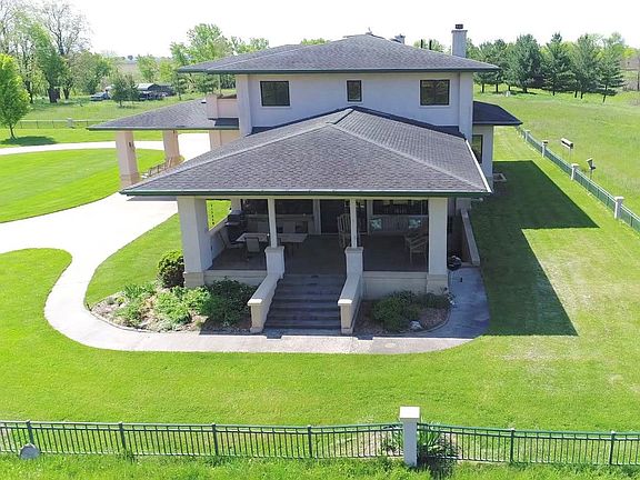 This elegant country home on 14+ acres is a private safe haven surrounded by nature in rural Iowa. Circular drive access to the stately covered entry. From the moment you step in you will relax & feel at home. Sky-lit central Atrium & views from every room. Every luxury in the Chef's kitchen with custom maple cabinetry, hardwood flooring, granite countertops, Dacor gas range & oven, & eat-at island w/second sink. Adjacent breakfast nook. Formal Dining with eyebrow archways & picture windows which expand into the Living Room w/fireplace & lighted trey ceiling. Retreat in the Family Room with fantastic space for everyone & be sure to walk from there to the covered veranda which is perfect for entertaining & for taking in all of nature & its beauty. Master bedroom suite & 4 additional bedrooms. Lower-level with separate entrance, 10' ceilings, recreation area, & a guest suite. Much more to see!