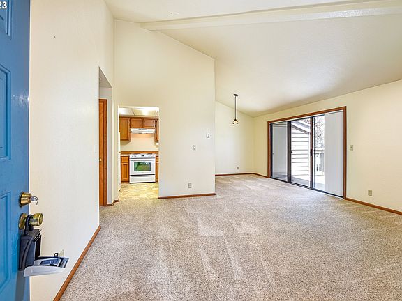 OPEN HOUSE 5/6 & 5/7 12-2. Beautifully maintained upper level end unit with great privacy and convenient location! Vaulted ceilings, wood fireplace, A/C. Updated kitchen & bath. Deck with storage closet. Well groomed grounds and common areas. Private walking paths & access to Willamette Riverfront paths. Deeded carport, pool and more!