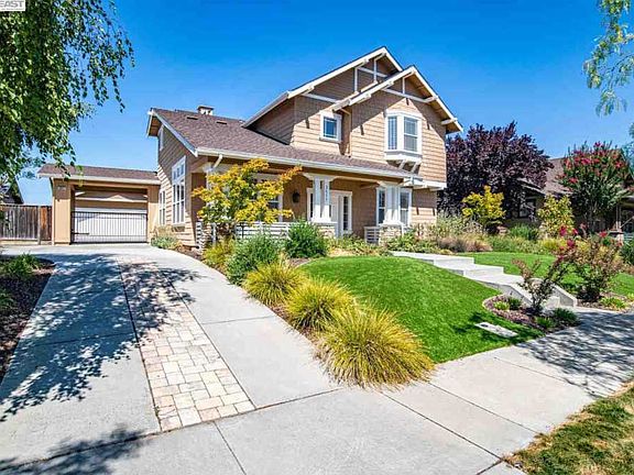Livermore Wine Country Beauty! This gorgeous Craftsman home features a very desirable floor plan with lots of natural light, situated on a premium lot backing to open space. Cook's Kitchen features new stainless steel appliances, granite counter tops, breakfast bar, and breakfast nook. Adjacent Family Room with fireplace. Formal Living Room and Formal Dining Room with Butler's Pantry. Executive Office/main level Bedroom and Bath. Spacious Primary Bedroom with newly remodeled Bath and custom walk-in closet. Hardwood floors, designer tile, and newer paint inside and out. Large, private backyard backs to open space with views to vineyards, hillside, and Mt. Diablo. Custom patio and pergola, mature landscaping in front and rear yards, detached garage, and much more! Close to vibrant Livermore Downtown, award winning Livermore wineries, parks, walking and biking trails, and major commuter corridors. Low HOA dues.