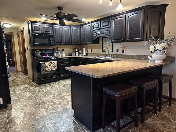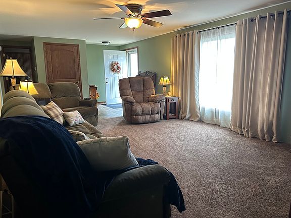 Great ranch home on 1.76 acres just outside of city limits. 3 bedroom, 2 bath, 2 car attached garage. Large kitchen features quartz countertops and includes all appliances and breakfast bar. Main floor laundry. Master bedroom with full bathroom. Updated guest bathroom. Family room with wood burning fireplace. There is plumbing in the basement for a third bathroom. Septic system is approx. 4 years old. 12X16 storage shed.