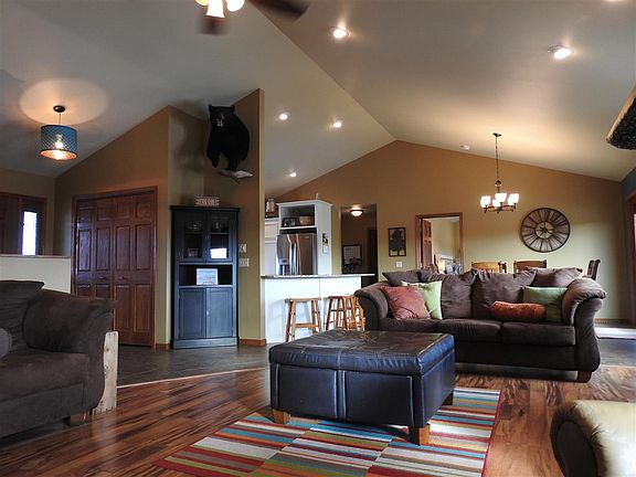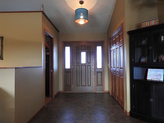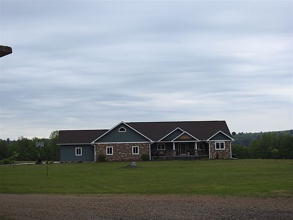 Impeccable views of Norway bluffs and miles of field and forest from your back deck. Open concept with stone wood burning fireplace with vents and blowers that can actually heat the house! Beautiful kitchen with granite counters, stainless steel appliances, ceramic tile and gorgeous views from kitchen sink. First floor laundry/mud room off of 3 car attached garage. Master en suite on the opposite end of additional bedrooms. Walk-in closet, granite and walk-in tiled shower. Feel the quality throughout with solid six panel oak doors, pocket doors, Pella 3 pane windows, TREX decking and beautiful stone exterior accents! Walk out lower level with finished family room and stone corner accent wall for an additional wood stove, 4th 12x20 bedroom and 3rd full bath. Plenty of storage space. Relax on the expansive covered front porch with views of the bluffs or entertain on your back deck with panoramic views of nature! Potential for pond. This gorgeous home sits perfectly on the 5 acre parcel built by one of the best - Gary Miller.