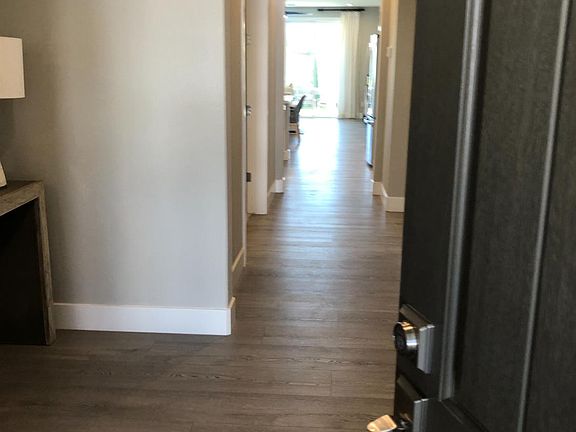 Single story model home features optional study and covered patio, upgraded white cabinets, stainless steel kitchen appliances, quartz kitchen countertops with tiled backsplash, and luxury vinyl plank and carpet flooring throughout the home. Includes solar panels, refrigerator, washer and dryer, and fully landscaped rear yard.