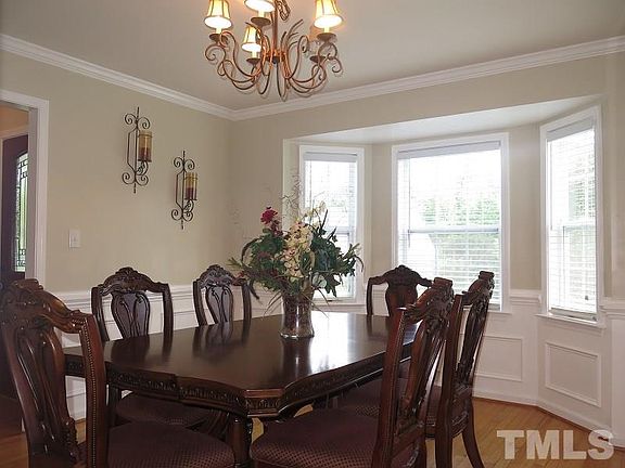 Wonderful traditional style home in convenient Willow Spring location. Hardwoods throughout most of 1st floor. Extensive crown molding. Smooth ceilings. Fresh paint. New carpet. Spacious living room features wood burning fireplace. Formal dining rm offers bay window & wainscoting. Bright and open eat-in kitchen. Spacious master suite includes vaulted ceiling, garden tub with separate shower and walk in closet. Huge bonus room. Oversized deck. Fenced backyard with 20X12 storage shed. Large 2 car garage.
