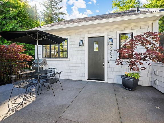 This home boasts a rich history, evolving from a 1917 carriage house into a charming cottage and now a stunning European-inspired maison. Every level of the home is designed to delight, featuring lush green views, private patios, and meticulous attention to detail. Completely remodeled in 2016, the space exudes a spacious and inviting atmosphere, with warm wood floors, high ceilings, and walls of windows. The high-end finishes and appliances, custom-built walnut cabinets, and a luxurious spa-like bathroom add to its appeal. An additional studio, built in 2019, offers flexible space perfect for an office, TV room, or creative retreat. Located in the heart of Portland Heights near OHSU, PSU, NW 23rd, Washington Park, shops and cafes! *Total square footage includes the studio.