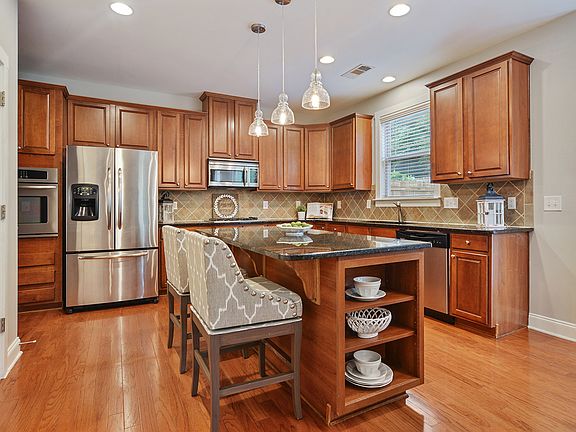 - Kitchen Features: Breakfast Bar, Cabinets Stain, Pantry, Other, Eat-in Kitchen, Stone Counters, View to Family Room, Kitchen Island