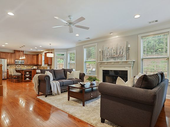 Shorten the commute and relax at home! Popular five bedroom floor plan with designer kitchen! Amazing outdoor space with custom stone fireplace in your fenced-in yard! NEW paint, carpet, & hardwoods refinished! Main level 5th bedroom or home office with closet. Upper level master bedroom suite with large walk in closet, ensuite bath with double vanities and soaking tub. Three additional bedrooms up and a second flex space / media area. Ready for your summer cookouts!