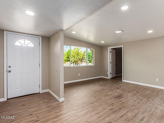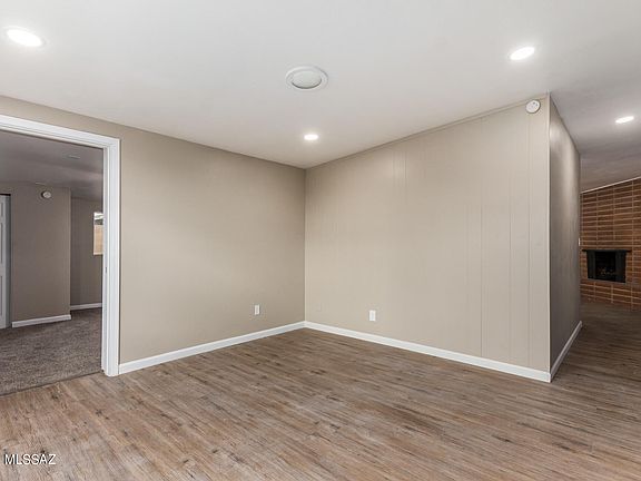 This turn-key property in Tucson has been recently renovated! The interior features wood-look flooring, fresh neutral paint, dual pane windows, ceiling fans, and artfully placed recessed lighting. The inviting living room beckons you to unwind, while the formal dining room with sliding glass doors to the back patio is ready to hold a feast. Notice the floor-to-ceiling fireplace in the family room, promising cozy evenings. The kitchen displays white cabinets, stainless steel appliances, and granite counters. Venture to the primary bedroom, equipped with plush carpet and a private bathroom for convenience. One of the secondary bedrooms includes a walk-in closet. Spacious backyard provides an open patio for al fresco dining. Don't let this opportunity slip by!