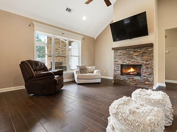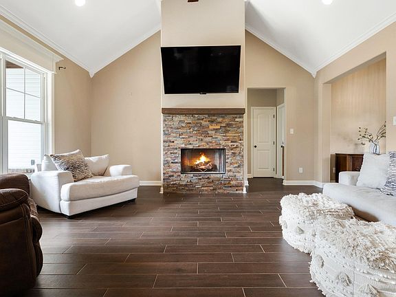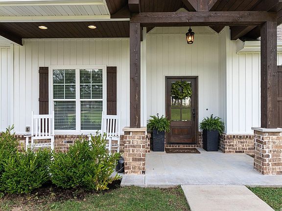 This spacious gem greets you with an inviting foyer that leads to spacious living area with a cathedral ceiling and woodburning fireplace. Eat-in kitchen featuring a kitchen island, stainless steel appliances, and a pantry. Retreat to the large primary bedroom with its generous walk-in closet and ensuite bathroom complete with dual sinks, a custom tile shower, and a jacuzzi tub. Fourth bedroom can easily me made into spacious office. Quiet and serene atmosphere that extends to the 2-acre property, where you can enjoy exciting views of neighboring horses. Back patio showcases large brick woodburning fireplace, perfect for entertaining. Experience the perfect blend of rural charm and modern convenience in this desirable location. Don't miss your chance to call this serene oasis your own. BONUS! Features a tornado safe room!