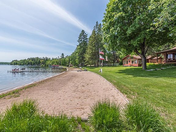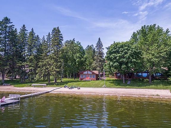 Private estate nestled on the shores of Pokegama Lake with a park like setting. Stunning lot with a 20' x 137' sandy beach and gentle elevation to perfect shoreline. This incredible property sleeps 10+ between the elegant main house, two-bedroom beach house, and nicely appointed studio unit. Beautifully designed with premium construction and finishes throughout. Vaulted ceilings, panoramic views, hickory floors, gourmet kitchen, large covered porch with ceiling fans, and So. Much. More! Properties like this are incredibly rare on Pokegama Lake! Several new upgrades including natural gas furnaces, windows in beach house, new septic, landscaping, exterior log work, sprinkler system, water heater etc. Enjoy a stunning turn key property on beautiful Pokegama Lake!