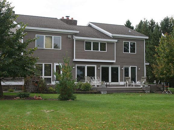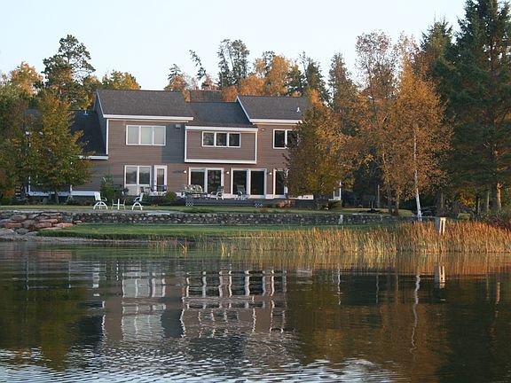 On one of our best lakes, Fish Hook, is this excellent 150 feet of sandy beach with level to the lake views from this good quality home! Granite counter tops,hardwoods floors, cherry cabinets and large master suite. Two fireplaces, one gas, one wood burning. 4 bedrooms, 3 bathrooms, office/ library, in ground sprinkler system, four season porch, two large decks, built in grill, outside shower and over sized heated garage. Privacy, but yet on good road close to town!