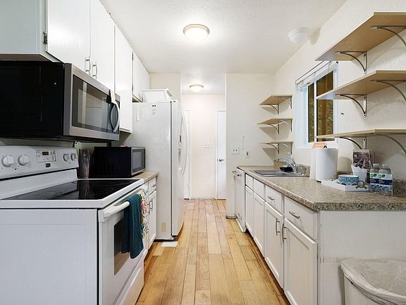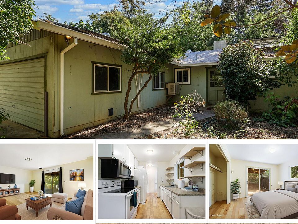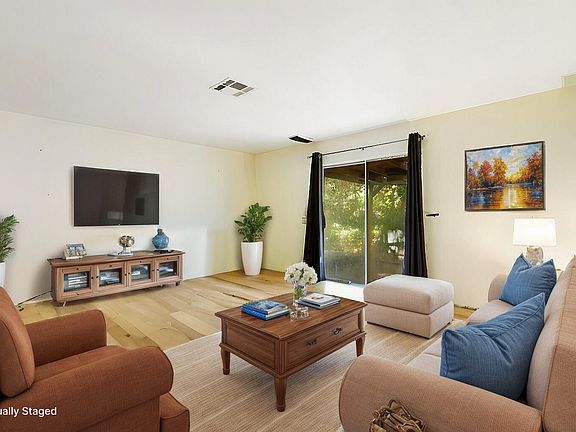 Welcome to this charming 3-bed, 2-bath home set on nearly an acre of peaceful, private land. With beautiful wood floors and an abundance of natural light, this home offers a warm and inviting open floor plan. The bright galley-style kitchen provides easy access to the main living areas, making it ideal for cooking and entertaining. Two large double sliding doors lead to a spacious covered back patio, perfect for enjoying the serene surroundings or hosting outdoor gatherings. The home is equipped with solar power for energy efficiency and boasts ample space for boat or RV parking, making it ideal for outdoor enthusiasts. Nestled in a private, wooded setting, this property offers both tranquility and convenience, blending the best of nature with modern comfort.