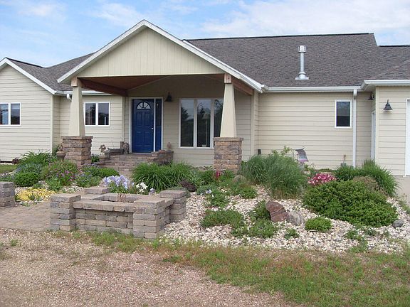 Wide open space, magnificent sunrise & sunset views and close proximity to town on main highway make this home a rare find! Country living without being too rural. Paver stone walkways lead you to the welcoming 12 x 16 covered front entry. Inside you'll find modern conveniences of an open great room with fireplace & vaulted ceiling, large dining area featuring a patio door to elevated deck & panoramic view,