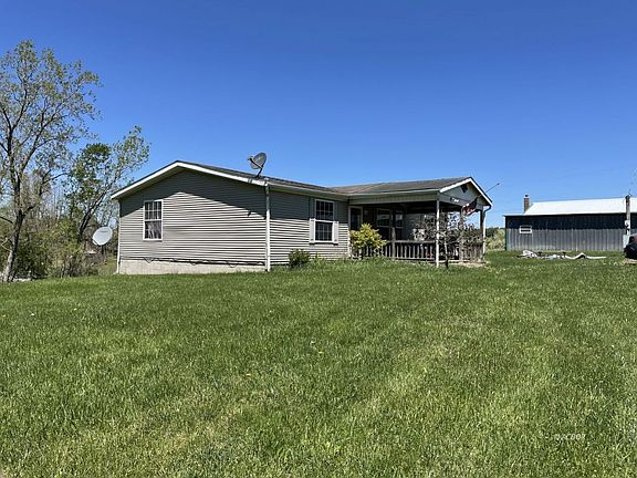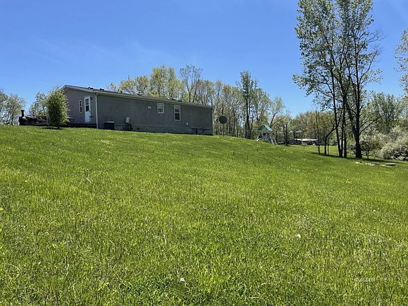 Quiet country living awaits on 6.7 serene acres at the top of the hill with beautiful views! Manufactured 3 BR 2 bath home (double wide) with large eat-in kitchen, lots of light, large front porch with porch swing, side deck, garage with shed, kids play gym, fruit trees, pond with dock, trails, cleared land, paths, rolling meadow, and trees. Just 10 minutes from 33. Add a few personal touches and some updates, and this home will really shine! Must see! (Updated pics of front of home after landscaped will be added Friday)