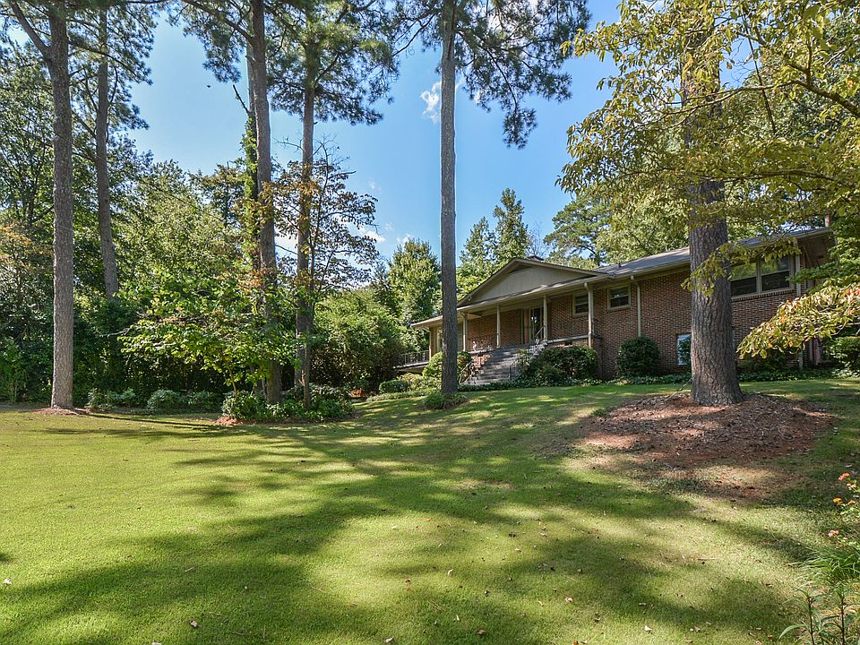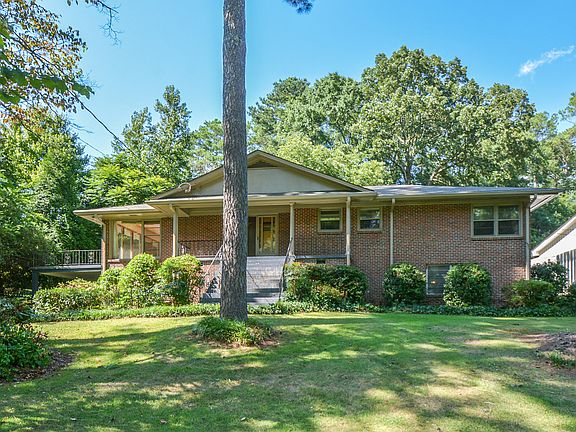 All brick ranch on full finished basement. Great opportunity to update or renovate. Great curb appeal with large relaxing front porch. Entry foyer, Open living area with corner fireplace and 3 walls of floor to ceiling windows and door to huge outdoor patio. Eat in kitchen. Huge flat ,fenced backyard. Terrace level w/ lots of windows and light, large rec room, bedroom and full bath, family room/ media room w/ fireplace, Laundry room w/ kitchen area. Quiet low traffic street. Unlimited possibilities , keep the original foot print or pop the top w/ a second story.