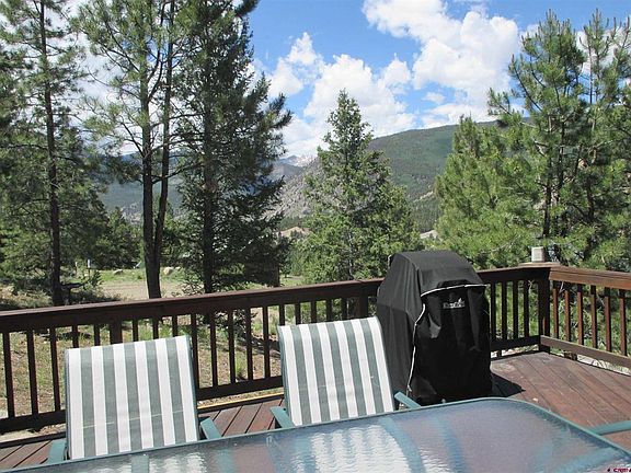 This custom D-Log home borders BLM and is situated on 0.96+/- acres in the covenant protected San Juan Ranch Estates Subdivision with over a mile of semi-private members only fishing in the Lake Fork of the Gunnison River. The home was originally constructed in 1997 and offers 2,598+/- sq. ft. with 3 main floor bedrooms, 2 main floor full baths & one 3/4 bath in basement, open kitchen/dining/living area, vaulted T&G ceilings, custom moss rock fireplace, hot water baseboard heat, ample windows for mountain views & solar gain, fully finished walkout basement with 2-car garage and an oversized deck with motorized awnings. This home has been a seasonal residence but would also make for a great full time family home. The San Juan Ranch Estates Subdivision maintains all of the roads year round and all power lines are buried for unobstructed views. In addition, the subdivision offers a stocked fishing pond, picnic pavilion and walking trail for members only. Please contact Broker(s) to schedule your accompanied showing today.