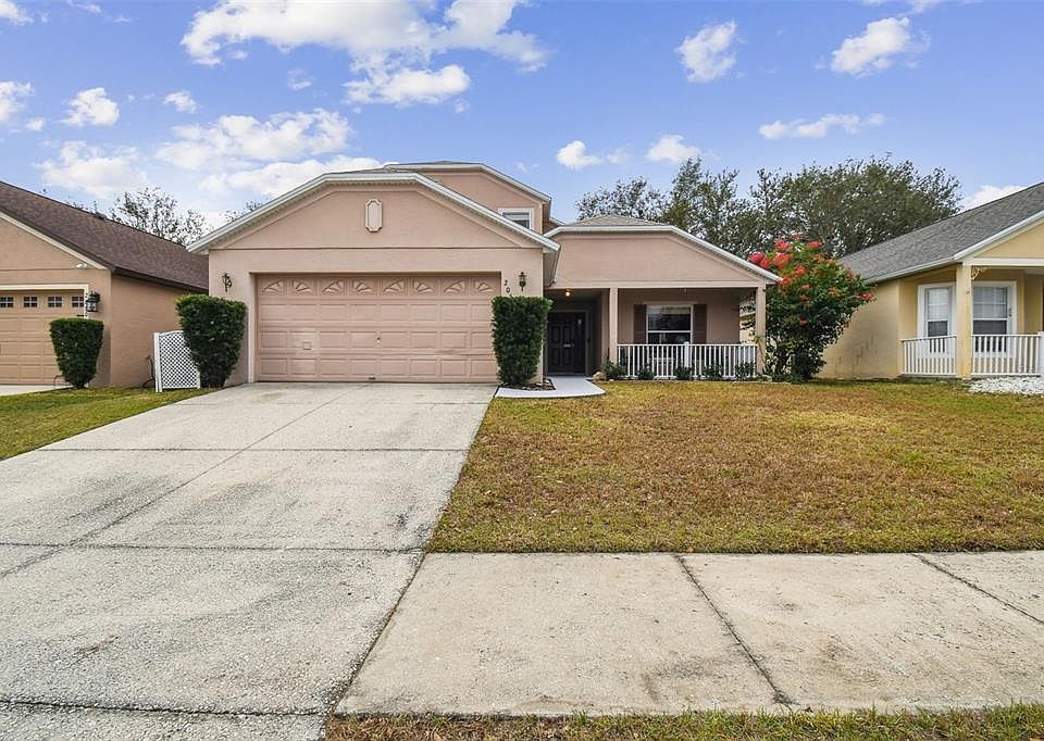 Welcome to this beautiful two story 4 bedroom home - one of the largest floorplans in Lexington Village! This stunning property boasts a charming front porch that is perfect for enjoying your morning coffee or watching the sunset. As you step inside, you'll be greeted by two-story high ceilings and an open concept floor plan that is perfect for entertaining guests. The kitchen is very spacious with tons of counter space! It overlooks the living room where you'll never miss a beat. You'll love all the extra windows that bring in lots of natural light. The half bath downstairs has been nicely updated and is great for guests. With 4 generously sized bedrooms, there is plenty of room for the whole family to spread out and relax. The primary suite on the main floor features a large en-suite bathroom with a soaking tub and separate shower. Upstairs 3 large bedrooms share a hall bath. The covered and screened lanai is a great space to enjoy cool evenings outside. The yard is spacious and private with no rear neighbors! You'll appreciate that the roof is brand new! Replaced in 2023! The home is located in the perfect location, offering convenience to shopping, dining, and entertainment options. There are several major developments coming nearby - the Groveland downtown redevelopment and the Groveland Square shopping center - making it a great opportunity to grow in equity quickly. Don't miss out on the chance to make this house your next home!