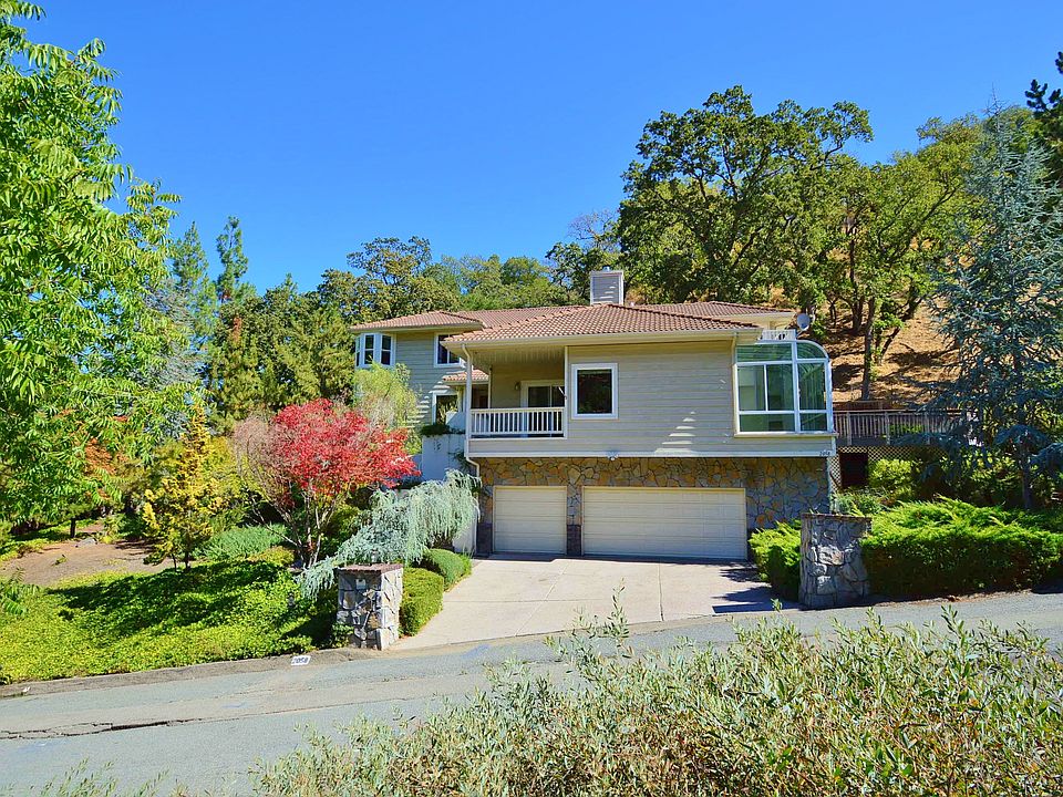 Peaceful and Private with Picturesque Views! Gorgeous custom home! Light and bright open floor plan which is perfect for entertaining. Huge kitchen opens to family room and features a 5 burner gas cook top on an oversized island, double ovens, stainless appliances and a cozy breakfast nook. Large family room features vaulted ceilings, custom gas fireplace, and a balcony to enjoy the tranquil views. Beautiful master suite with a spectacular walk in closet with built in shelves. Master bath features double sinks, a jetted tub and an oversized shower. The grand deck off of the kitchen is perfect to enjoy the beautiful views of the hills and wooded setting. Large flat area for play. Other outstanding home features include inside laundry, crown molding, alarm system and a 3 car garage. Award winning Alamo schools and an easy commute location make this home a magnificent opportunity to live in Alamo.