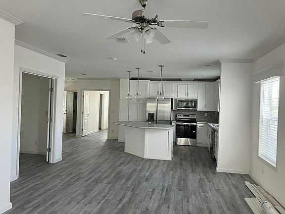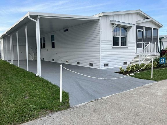 Located in Caribbean Naples, a 55+ Lifestyle Community. This beautiful 2 bedroom + a Den, 2 bathroom house features an open floor plan, perfect for entertaining friends and family. Enter the large living room and take notice of the contemporary kitchen and dining space. The kitchen includes brand-new energy-efficient appliances and plenty of counter space to prepare a great meal. Enjoy the sanctuary of your master suite, which includes a large closet and a sleek en suite bathroom with a large shower. The second bedroom is airy and features a large closet for extra storage. Utilize the third bedroom as a small den or office space. The main bathroom includes a tub/shower combination and vanity with additional storage. An indoor full-size laundry closet is a great bonus to have. Soak in the Naples lifestyle while relaxing on your covered front porch. This custom home has extra square feet added to the floor plan as well as a screened-in porch, a double-door shed, and an extended carport. One year lease terms. Pet Fee - non-refundable pet deposit of $250