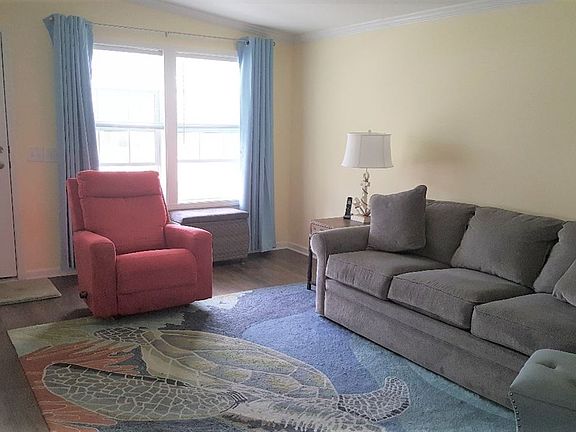 Fantastic corner unit that has many upgrades including Lovely Quartz countertops with large oversized island with large drawers and hidden garbage drawer and room for 2 stools, tons of cabinets in the kitchen and SS upgraded appliances. Nice size dining area with lots of natural light and built in server with matching quartz top. Arched ceiling between living room and kitchen ads charm. Custom wide hallway that fits a wheelchair or walker and a bonus large hall closet with shelving for a pantry. Perfectly sized laundry room with door that leads to your concrete patio and garage access door. 2nd bdrm with nice size closet, master offers a walk in and a nice size bathroom with a shower and storage. This is a 55+ community, lot rent covers, trash, sewer, yard maintenance including snow removal, use of recreation center and pool. This unit is like brand new! Subject to owner finding suitable housing. Lot rent is $560 per month.