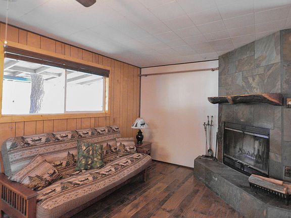 Single-level ranch style on heavily treed lot with mature Ponderosa pine and juniper pine. Long setback from street. Large covered front deck with view of treed lot. New wood-burning fireplace with blower & glass doors, natural stone (slate) raised hearth. New site-built workshop/"toy" garage with metal roof, loft storage for canoes, etc. Long side driveway accommodates RV with plenty of extra parking. New wood laminate flooring throughout, new fixtures, new lighting, ceiling fans, new electric panel, approx. 3 yr. old oven-range, microwave, refrigerator.