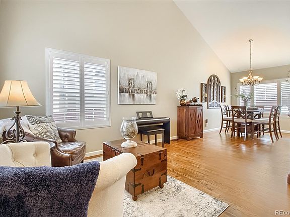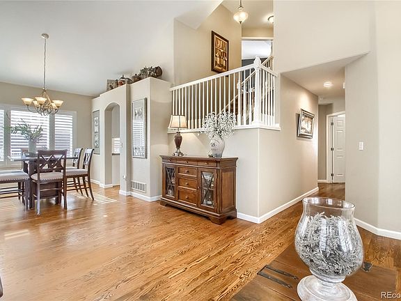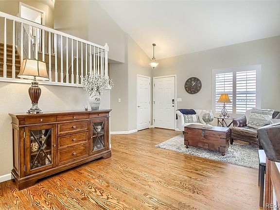 Beautifully maintained Vista Ridge Home! Gorgeous hardwood floors and vaulted ceilings welcome you through the door. Main floor bath has been fully updated and is situated next to the home's main floor bedroom. Kitchen includes all new stainless steel appliances, granite countertops and newly painted cabinets. Living room with built in speakers and fireplace, opens onto the backyard deck/patio for easy entertaining. Brand new shutters have been installed throughout the home. 2nd floor features master bedroom, w/ ensuite bathroom and mountain views. All bedroom closets include built-ins and shelving to maximize storage. Unfinished basement with egress window provides space for playroom/gym or option to add a 5th bedroom. Oversized 2 car garage, Water Heater and Roof were both replaced in 2019. Truly turn key property, with pride in ownership at every turn. Schedule your showing today!