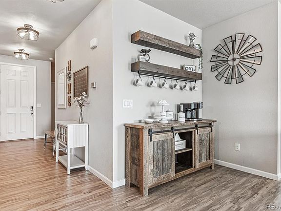 Welcome Home to 2058 Villageview Lane located on the east side of Crystal Valley Ranch in Castle Rock Colorado. It boasts pride of ownership and thoughtful craftsmanship. Envision a beautiful blend of rustic charm and cozy sophistication blending traditional and modern style. With 4-bedrooms, and 3 baths this home offers a delightful balance of warmth and functionality. With an open concept design the main level welcomes you with expansive Vinyl plank flooring, 3 bedrooms, 2 baths as well as a laundry room. Upon entry to the primary bedroom, one will notice a rustic shiplap wall, a custom barn door installed between the bed and the updated bath as well as a walk-in closet that includes built-in shelves, and drawers to maximize storage. Throughout the home, most of the light fixtures have been updated to add a personal and custom touch. Gather around the kitchen island with friends and family, as there is plenty room to entertain and tons of storage in your walk-pantry. The finished walkout basement is a footprint of the main level with only a small unfinished area with room for some storage and HVAC. It includes a kitchen/wet bar, another full-size refrigerator that is staying with the home, and a second dishwasher. This large living space can be used as a home gym, study space, work from home, gaming and entertainment space. Bedroom number four could be a guest/mother-in-law suite or a great space for teens to hang in the extra lounging area. The third bath has a large walk-in shower with river rock flooring, extra laundry space for a stackable washer and dryer, and two entrances. On top of all of this the owner built a fun fort for the kids in the garage. Be sure to check it out! Thoughtfully crafted with attention to detail this home has been personalized to elevate the overall feel and character of the space.