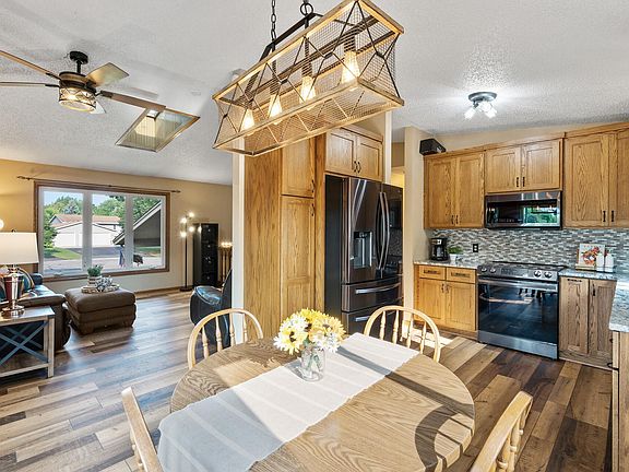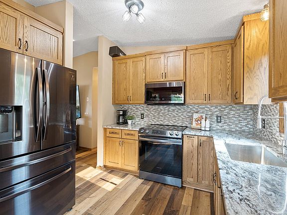 Nestled in a peaceful Cul-de-sac, this place is all about the amazing outdoor features! Enjoy a large fenced yard and two-tier deck with views of Meadows park and playground. Relax in your roomy gazebo with a hot tub for your ultimate unwinding or party pad. Enjoy an oversized 3-car heated garage & store your yard gear in the large shed with loft or convert it to playhouse. As you step inside, you'll be greeted by soaring vaulted ceilings & skylight that amplify the sense of space. And here's the best part – The kitchen has been completely remodeled! There's tons of storage space thanks to the new ceiling-height cabinets. Enjoy beautiful granite countertops that sparkle and complement the new stylish backsplash. Other notable upgrades include a NEW furnace, water softener, water heater, washer, dryer, LVT flooring, carpet, front door, garage entry door and bathroom vanity – all since 2021. Bonus: You're a short walk away from both Lake Marion, Antler Park + coming soon restaurant.
