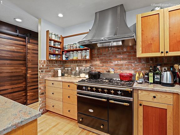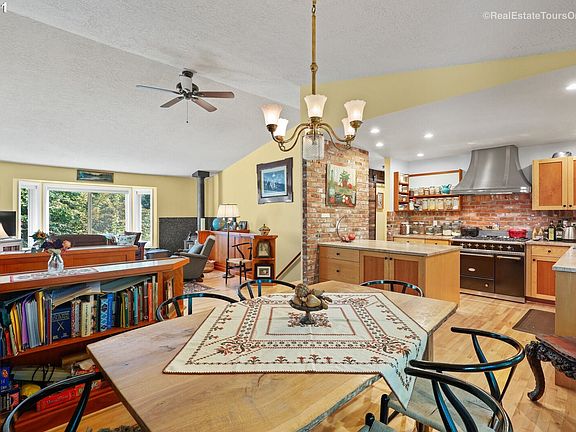 Looking for peaceful country living? Wonderful private setting with 5.4 acres & a year round creek. Fruit trees, garden, chicken coop, dog run, outbuildings = workshop, 2 barns & bunkhouse. The home has over 2300 sq ft w/hardwood floors, kitchen with granite counters, Lacanche propane range & pantry. Vaulted living room w/BI bookshelves; Master suite on main w/washer/dryer hookup. Lower level family rm, potential for kitchenette, 2 bedrms, full bath & washer/dryer hookup. Come check it out.