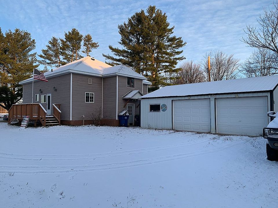 Great country setting on half acre. Convenient central location between Wausau and Stevens Point areas. Formerly Gabe Green Schoolhouse. All living space currently on main level including three bedrooms and laundry as well. Large kitchen with abundant cabinet space. Decks on front and back of home. 2-1/2 car detached garage with electric openers and oversized back walk-door to drive the lawnmower or wheelers in. Original schoolhouse girls outhouse still on-site and was most recently used as a chicken coupe. Space that was originally used as the schoolhouse bell tower is currently wide open for your imagination, home office or possible additional living space with some finish work. Sand Point Well currently servicing property, located in basement. New Well pump (2017) Electrical updated recently to 200amp service. New roof, soffit & fascia. (2018) High Speed Fiber Optic Internet services this property! Property is being sold as-is.