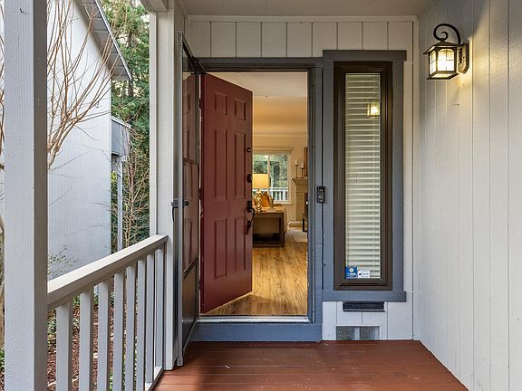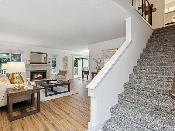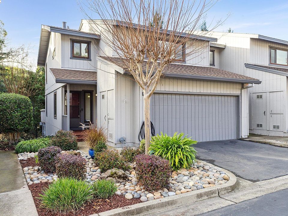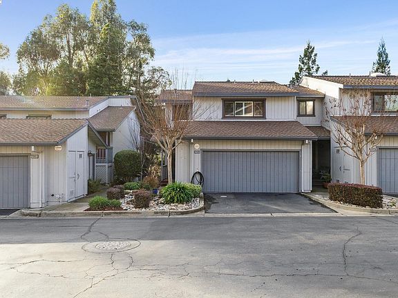 Seeking solace? Here it is. Nestled in a wooded area off Crow Canyon Road is a quiet forest like community that awaits you. The home’s layout has clean lines, as you enter, find rounded wall corners, newer vinyl plank flooring, & a spacious family room w/ fireplace. The dining room is adjacent the kitchen. Maple cabinets and large pantry, surround shiny black appliances.The downstairs guest bath & kitchen are adjacent to the garage access door.Features throughout: newer dual pane windows, plantation, or plantation like shades, mirrored closet doors, ceiling fans in each room, vanities w/ granite counter tops and backsplashes, high quality shower & bath doors, newer faucets and upstairs guest bath with two sky lights. The Primary bedroom has vaulted ceilings, fantastic closet space, and a privacy door to the bathroom. There is a separate vanity near the dual sinks. Exterior features: oversized Trek deck, privacy walls, entry to the large basement with shelving for storage. HOA offers a community pool. End unit, no thru traffic, move in ready, Castro Valley schools are highly desired & are recognized as “Exemplary” in the recent years.Easy access to I580,I680,I880, plus CV B.A.R.T.
