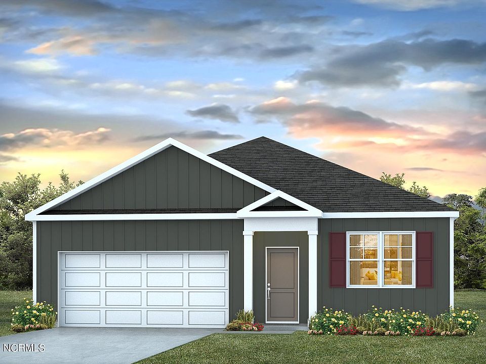 Waterside presents The Aria in the beautiful coastal town of Surf City. It's a 3-bedroom, 2-bathroom home with 1,618 square feet of open living space. Its centerpiece is the showstopper kitchen, featuring a large island, stainless steel appliances, and a spacious pantry. This one-level floor plan is perfect for entertaining or relaxing in style. The Primary Suite offers a massive closet and a luxurious bathroom with a walk-in shower, linen closet, and dual vanity. With its open layout and sleek design, the Aria is ideal for anyone seeking comfort and modern features. Waterside Amenities include a swimming pool, clubhouse, fitness room, firepit, play ground, multi-sport court, sand volleyball and walking trails throughout the community. The white sand beaches and the beautiful bluish green waters of the Atlantic Ocean offer a perfect combination of adventure and relaxation. An almost year around mild climate means you can enjoy the warm salty air and all that the area offers year-round. Your new home at Waterside is less than a mile to the new high-rise bridge with a pedestrian lane where you will have sweeping views of the Atlantic when you are at it's crest. Waterside is an easy drive to Wilmington and Marine Corps Base Camp Lejeune and all of the conveniences are nearby. Home Is Connected® Smart Home Technology is included in your new home and comes with an industry-leading suite of smart home products including touchscreen interface, video doorbell, front door light, z-wave t-stat, & door lock all controlled by included Alexa Pop and smartphone app with voice! The photos you see here are for illustration purposes only, interior and exterior features, options, colors and selections will vary from the homes as built.