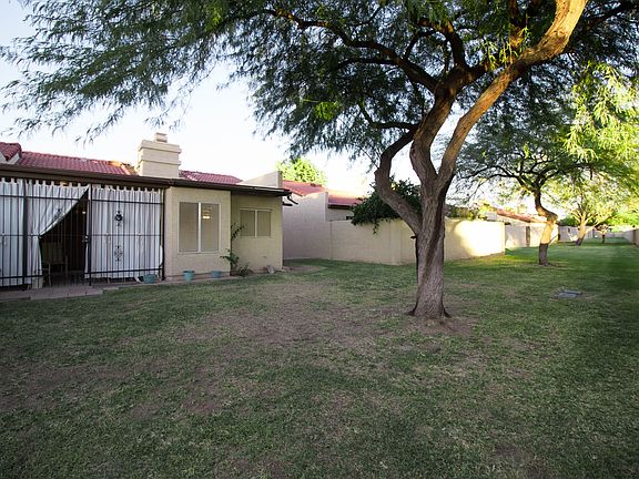 2 bed, 1.75 bath, 1,296 SF townhome in Villas Valencia in Mesa. Interior features kitchen with multiple ovens, fireplace in living room, master suite with walk in closet & 3/4 master bathroom, tile flooring throughout, formal dining, washer & dryer included, & a 2 car garage with built in cabinets. Exterior features front courtyard entry, private & enclosed covered patio, large open grass yard with shady trees in front & back, & community pool right across street. Excellent location in walking distance to restaurants, shopping, gas station, & schools but neighborhood is still quiet and private. Laid back, relaxed, family community of Villas Valencia.