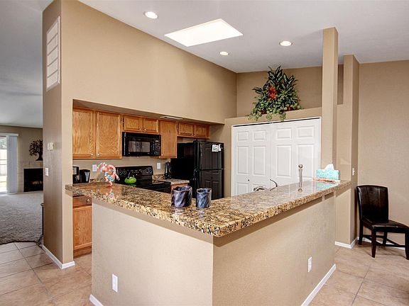 Absolutely Gorgeous Townhouse with lush green landscape and private gated courtyard entry. Soaring ceilings, cozy fireplace, soothing interior palette, ceiling fans, Arcadia Doors top patio, plantation shutters, plush neutral carpet, and beautiful tile floor in all the right places. Stunning chefs kitchen features black appliances, granite counters, breakfast bar, and wood cabinetry with stylish hardware. Formal dining area with upgraded lighting. The backyard covered patio and endless blues skies are perfect for outdoor entertaining. Community Pool Spa. Furniture for Sale by separate bill of sale.