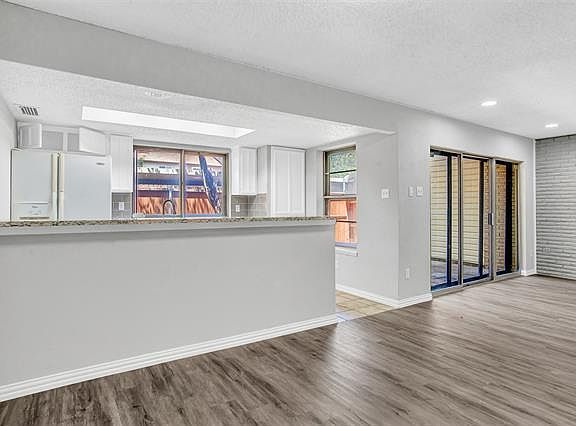 Updated three bedroom town home ready for move in. Kitchen is open to the dining room with refinished cabinets, Undermount Stainless sink, new flat surface cook top, stainless dish washer & LED lights. Family room has vinyl flooring fresh paint and can lights. Spacious downstairs bedroom with a full bath and closet could double up as a study or a formal living room. Generous Master bedroom upstairs with lots of closet space and a walk out balcony. Attached Car Port has a storage shed. Roof was replaced 2019, foundation repaired & covered by HOA, Sewer lines & plumbing lines replaced 2014. Third bathroom has an updated vanity & tub. Walking distance to the city library, green belt, park, Blanton elementary & Newman Smith High school plus just a few minutes driving distance to the Carrollton Park & Ride which offers rail rides to Denton & Downtown Dallas Community features a pool, club house & tennis courts.