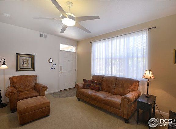Immaculate main floor condo! Move right into this bright and open 2 bedroom, 2 bath ranch style main level home. Outdoors enjoy the private fenced yard with flagstone patio overlooking the community green belt in addition to a second covered porch. It has a 1 car garage that's attached to the unit for added convenience. Close to shopping, schools, and I-25/34. Enjoy maintenance free living at its finest.