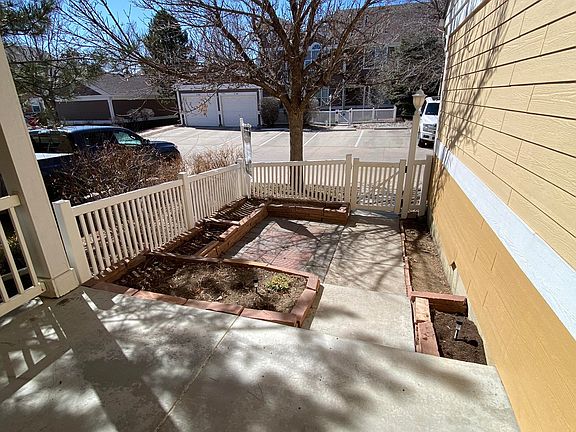 Back on the Market, no fault of the Seller.Immaculate, move in ready second floor spacious corner condo. This home offers open floor plan, 2 large bedrooms, 2 full baths, and a office. The kitchen has an island w/breakfast bar, stainless steel appliances, ample countertop/cabinet space. Great room has vaulted ceilings, gas fireplace, with massive windows that let in a ton of light. Enjoy your morning coffee on your balcony. This home also has a fenced front yard w/raised garden beds, convenient attached one car garage, tankless hot water heater, washer & dryer. Great location, close to community park, walking/bike trails, dog park, shopping, dining, hospital, I-25. One of the best views in the neighborhood!