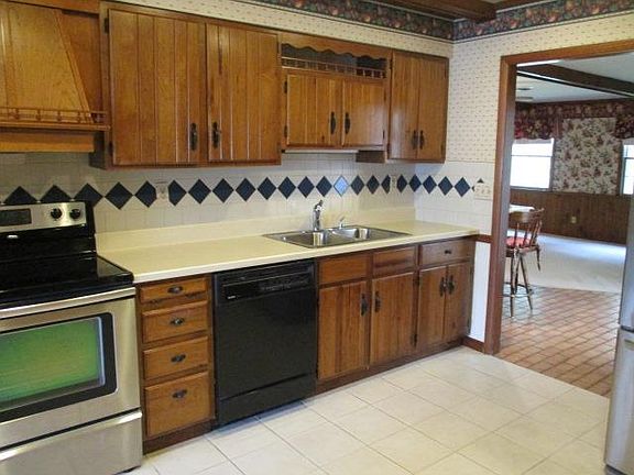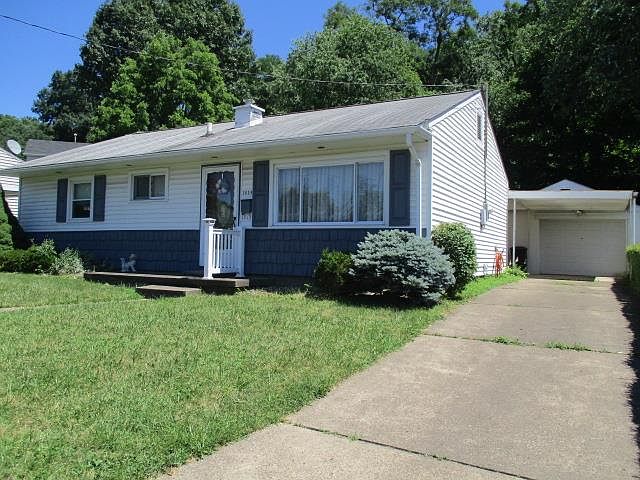 Nicely maintained ranch with three bedrooms, one bath. Large family room with eat-in bar area. Over-sized one car garage. Conveniently located to interstate. Lot does NOT go all the way to trees but new owner will have access to both sheds on adjoining property---they sit on an abandoned alley and current owner used both of them.