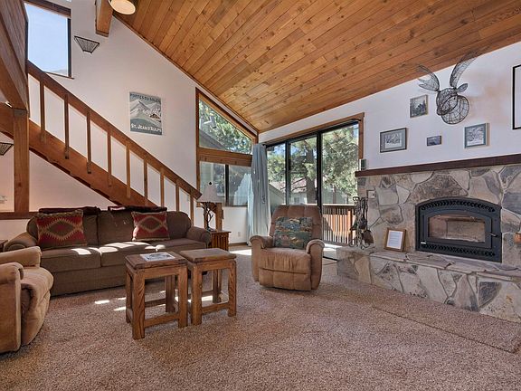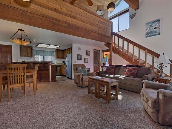 Rarely available Mammoth Sierra Townhomes end unit with two bedrooms and a loft, three baths. The townhome style floor plan means no units above or below. Park right in front of your condo and walk up to your front door. Just one shared wall with the neighboring unit. Incredible and convenient location close to shopping, dining, entertainment and Town shuttle bus transportation. Some of the many features include a large storage area off of loft, electric tankless water heater, which provides endless hot water, full size washer and dryer, newer stove, both bedrooms with ensuites, two trundle beds in loft, one can convert to either two twins or one queen size bed, vinyl plank flooring, newer carpeting, flat screen TVs in every sleeping area and an 80" 4K TV in the living room, Internet controlled wall heaters, Casablanca ceiling fan with remote control, and new deck installed recently with composite decking. The HOA has started to replace the front doors to each unit, which will be completed next year without any special assessments to owners. The complex features a swimming pool, spa, and barbecue facilities. Buyer shall assume any Town of Mammoth Lakes required chimney flue retrofit after the close of escrow. Sold furnished and turn key, ready to enjoy. Never on a nightly rental program and has been meticulously cared for.