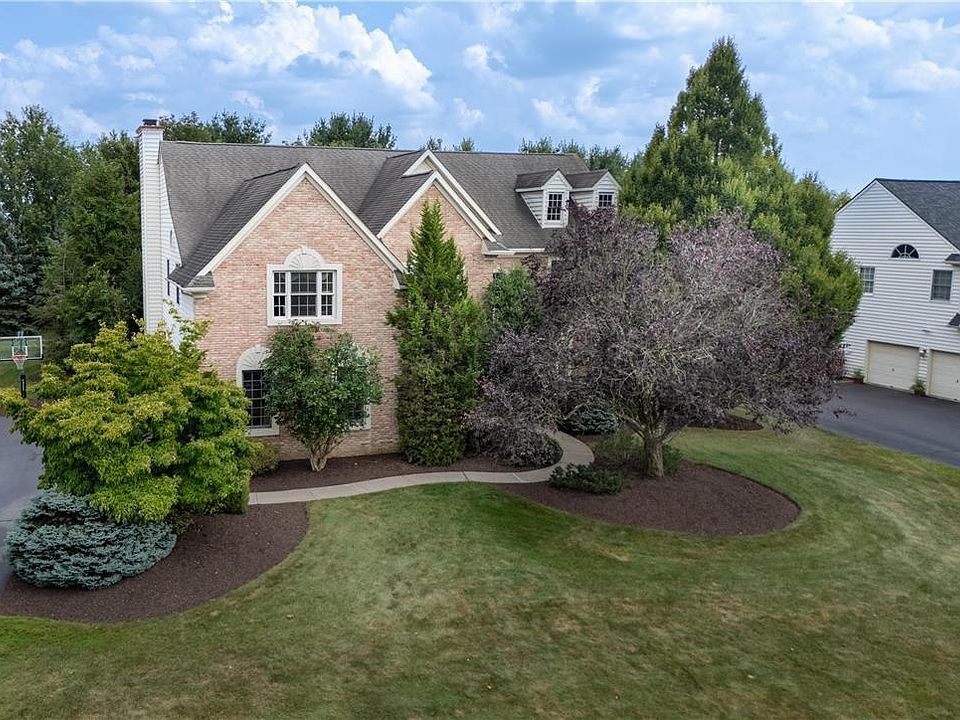 Set on a quiet street in the desirable Saucon Valley neighborhood of Washington Estates, lies this STATELY home! The exterior, with mountain views, has mature landscaping and a tree-lined backyard! Enter from the covered front porch & be WOWED by the grand 2-story foyer w/its open staircase, crown moldings & lavish hardwood floors, which extend throughout most of the first floor. To the left, French Doors lead into a spacious study, & to the right, is the living/dining rm, exuding ELEGANCE w/gorgeous moldings, arches & columns! The SPACIOUS KITCHEN w/eat-in-area offers an oversized island, Corian countertops, 42" cabinets, SS appliances, tile backsplash & walk-in pantry. The adjoining family room boasts a SOARING 2-STORY CEILING, abundance of windows, & gas FP. Two sets of sliding doors lead out to a patio. Ascend the back staircase to the sumptuous MA suite w/sitting room, 2 WICs & an ensuite bath w/soaking tub. Three other nice-sized bedrooms- one a Princess Suite, two others sharing a hall bath- & convenient laundry, complete this floor. The INCREDIBLE CUSTOM-BUILT BASEMENT, w/HIGH-END touches, offers extra living space for recreation & relaxation- including a BAR- complete w/KITCHENETTE- a gas FP & built-in shelving/cabinetry.