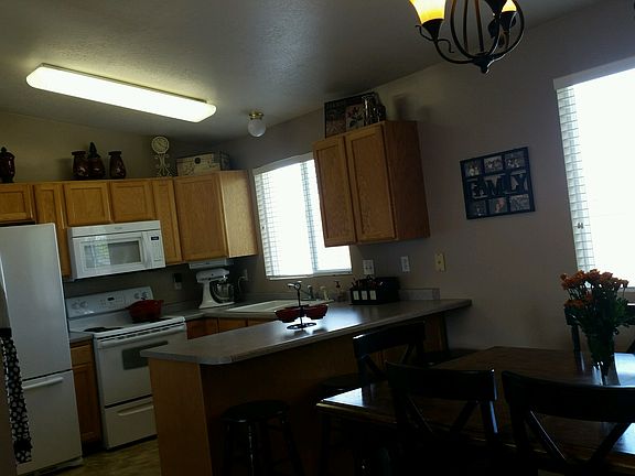 Beautifully updated west-facing home with new recessed lighting in living room and kitchen, ceramic tile in kitchen, dining room and entry. Large master bedroom with two over-sized closets and attached master bathroom. New wood blinds throughout home and a new, direct vent gas fireplace and custom mantle in living room. New fixtures in kitchen and bathrooms, cabinet pulls in kitchen, ceiling fans in all bedrooms, new closet door in guest bedroom and laundry room, and new paint throughout home.
